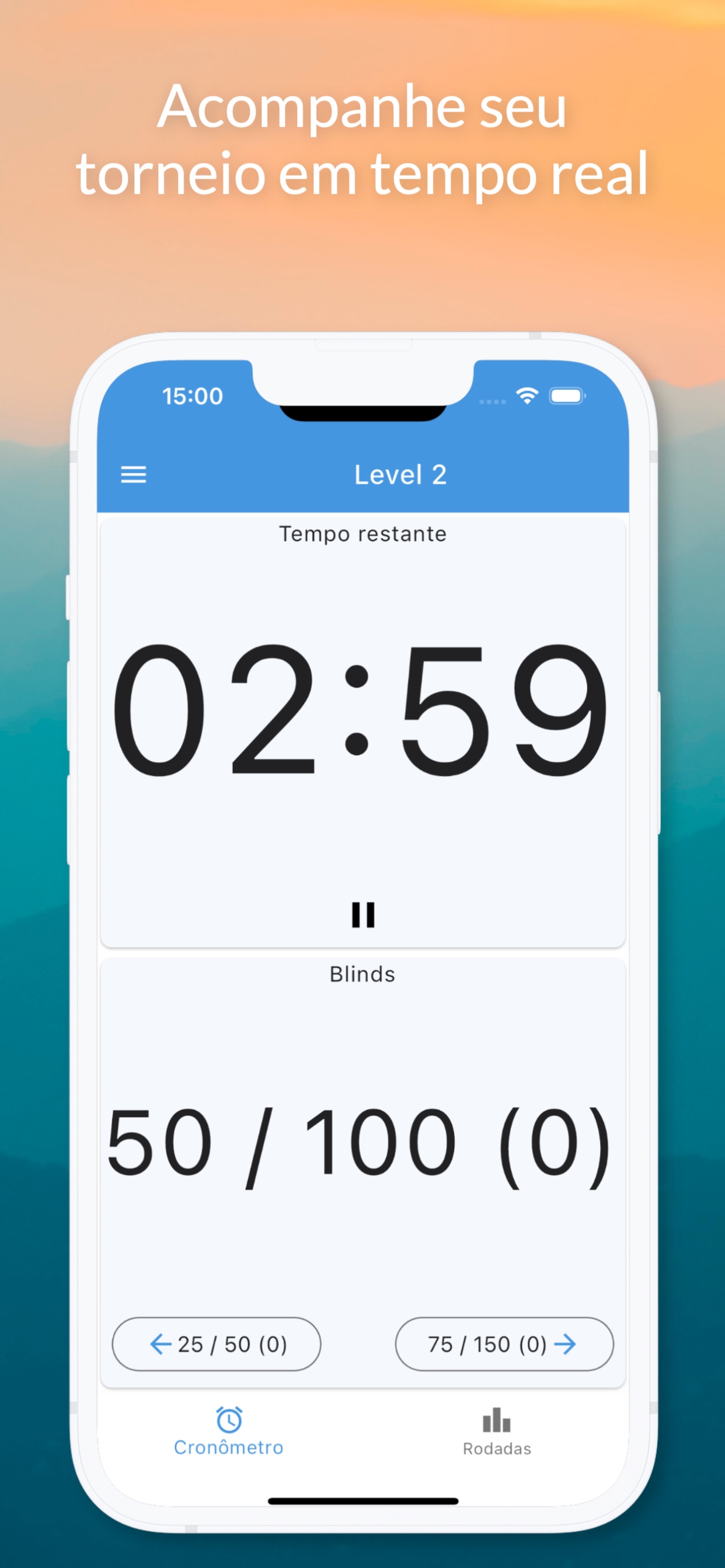 Configure a estrutura do seu jogo, comece e pause quando quiser! Você será alertado na alteração das rodadas e ainda poderá manter a tela do dispositivo sempre ligada para acompanhar!